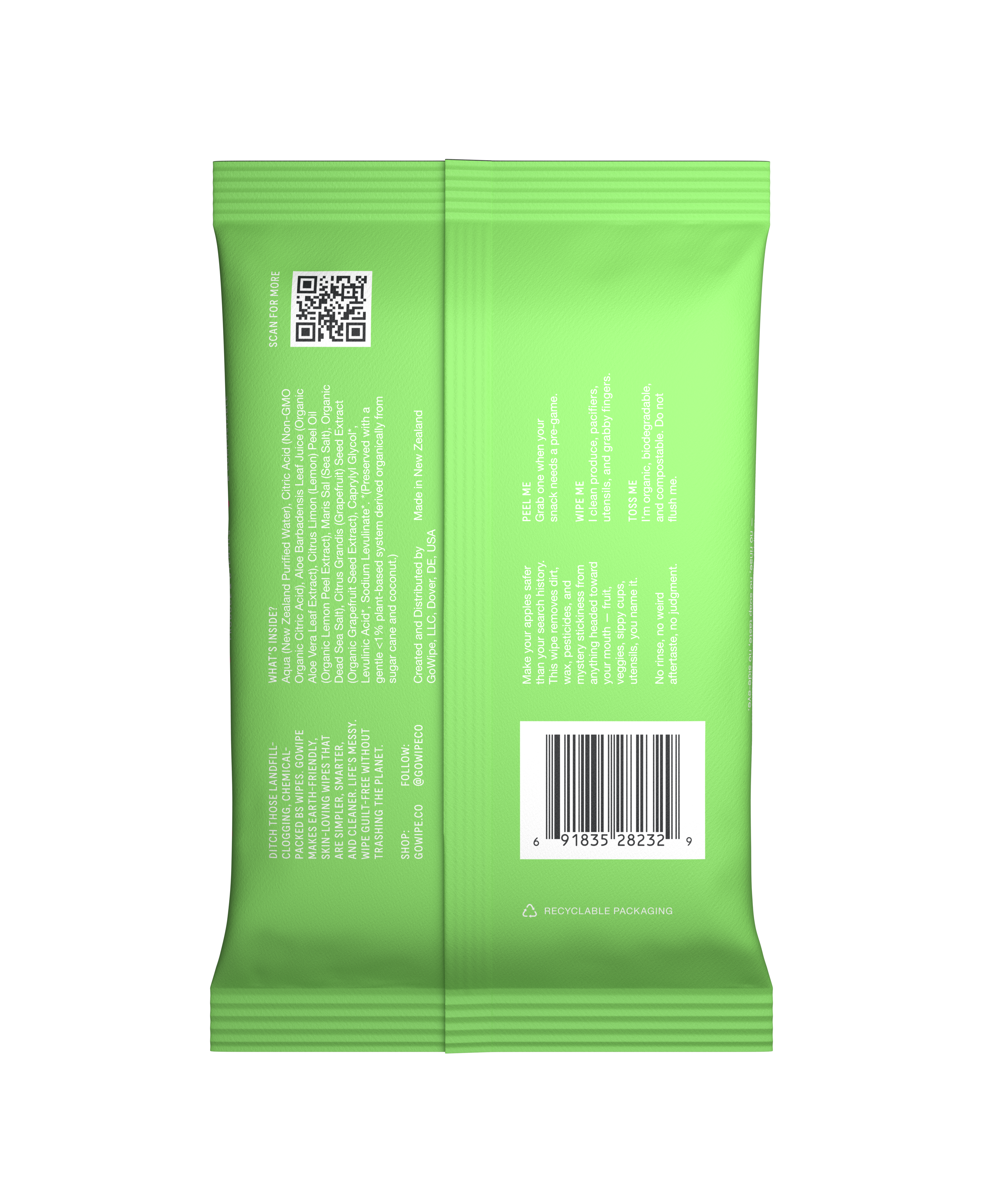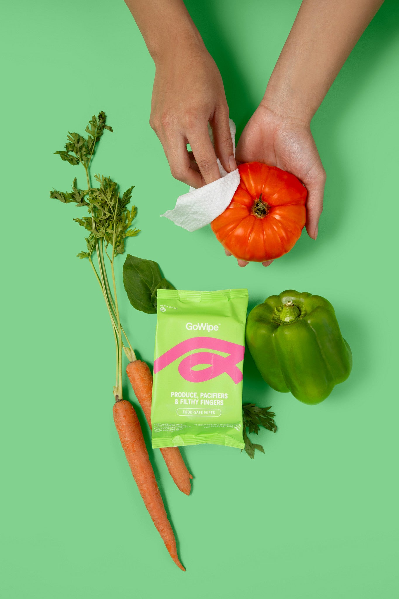 Organic & Food Safe Wipes. These GoWipes are made to be used for fruit, vegetables, hands & anything else that needs a quick wipe. No water, soaking, or scrubbing brush required.